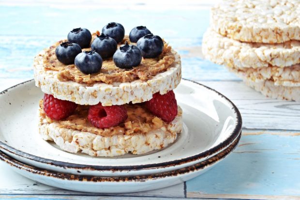 While the debate is out on the nutrient value of rice cakes, the whole-wheat variety seems to be a suitable alternative to white bread. One rice cake (9 grams) only contains 35 calories but they’re lower in fiber and nutrients compared to whole-grain bread or crackers. Add some peanut butter and berries for a low-carb snack.