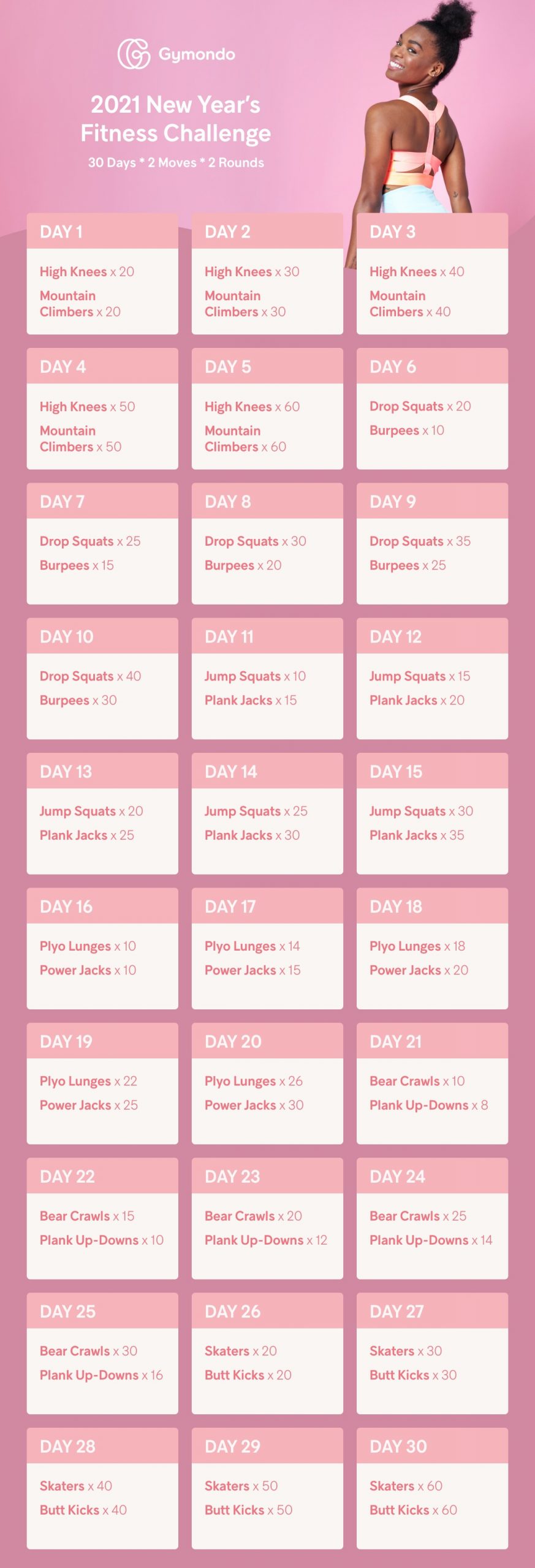 Welcome to Gymondo’s New Year’s Fitness Challenge for 2021! Below, you’ll find the official workout calendar—think of this as your complete schedule of events for every single day this month. Every high-impact workout in this challenge was designed to get your heart rate up and your body fat down.