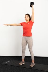 Dumbbell mit langem Arm über Kopf führen und stabilisieren