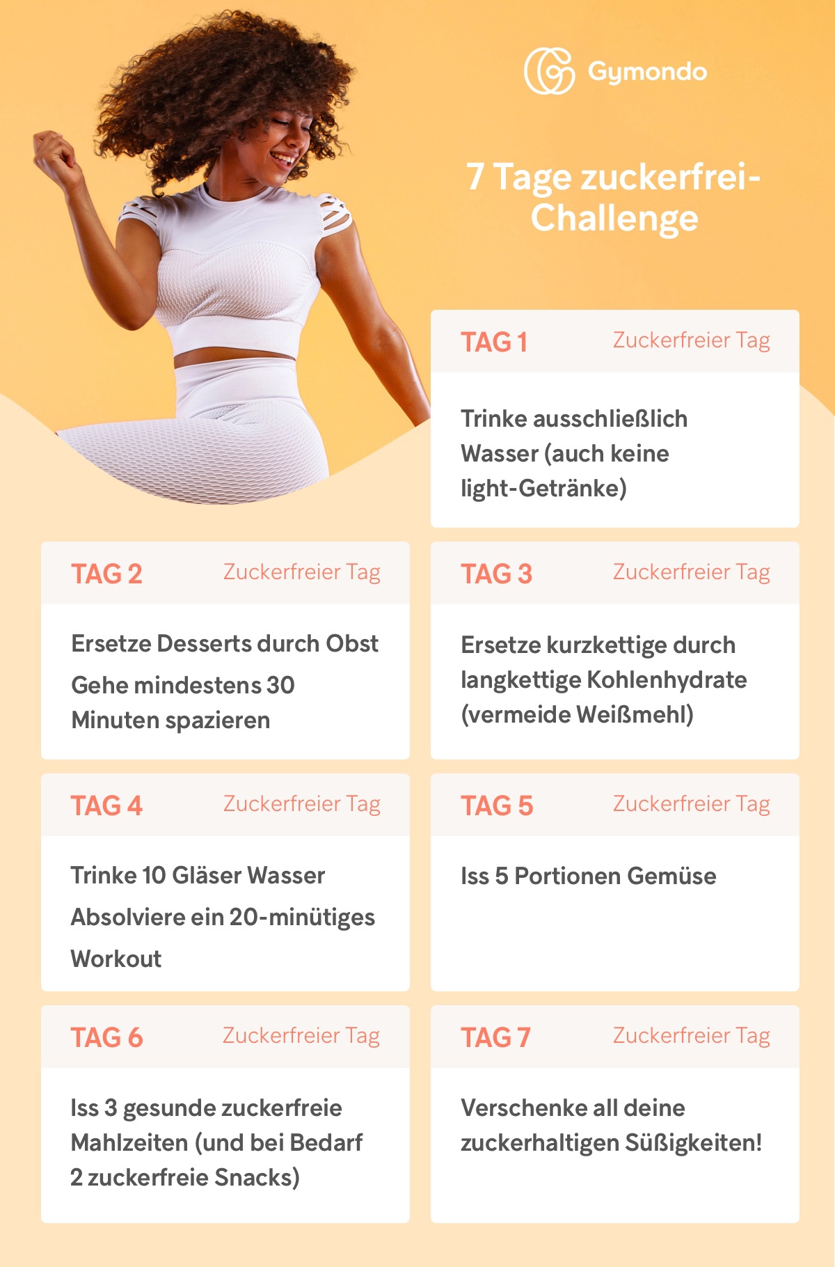 Versuche über die nächste Woche hinweg, deine tägliche Aufgabe zu erfüllen, um deinem Verlangen nach Zucker zu widerstehen und dich wieder erfrischt, energetisch und einfach gesund zu fühlen. Starte noch heute unsere 7 Tage zuckerfrei-Challenge und werde die beste Version deiner selbst!