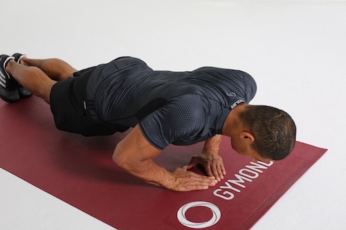 Diamond Push Ups unterscheiden sich von gewöhnlichen Liegestützen einzig in der Armhaltung. Durch deren veränderte Position wird die Übung intensiver und belastet vor allem die Rückseite der Arme, Trizeps und Deltamuskel. Deine Füße stehen auf den Ballen bei möglichst angezogenen Zehen. Beine und Rücken ergeben eine harmonische Linie, Deine Beine sind also also gestreckt und der Rücken gerade. Diese richtige Position erfordert Körperspannung. Es ist daher wichtig, von Beginn bis zum Abschluss aller Wiederholungen sowohl die Gesäßmuskeln anzuspannen, als auch für Stabilität in Bauch und unterem Rücken zu sorgen. Dein Kopf bleibt in Verlängerung der Wirbelsäule, während sich Dein Blick auf den Boden richtet. Die Hände werden bei Diamond Push Ups nun nicht direkt unter den Schultern aufgestellt, sondern nach innen versetzt. Sie liegen unter dem Brustbein und bilden einen Diamanten: Hände zeigen nach vorne, Daumen an Daumen, Zeigefinger an Zeigerfinger.