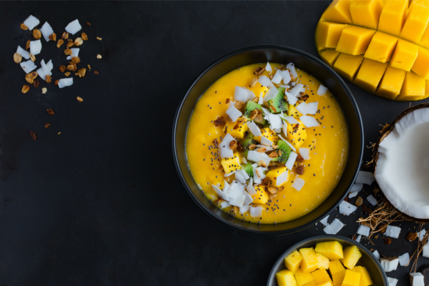 Es gibt wenige Lebensmittel, die besser schmecken als eine perfekt gereifte Mango. Süß, fruchtig, saftig, lecker. Mangos enthalten etwa 60 kcals pro 100g und können sich positiv auf deine Verdauung und die Darmflora auswirken und so dabei helfen, Körperfett abzubauen.