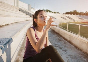 Besonders während längeren, intensiven Workouts solltest Du zwischendurch mal ein paar Schlucke trinken. So beugst Du einer möglichen Dehydration vor und erfrischst Dich.