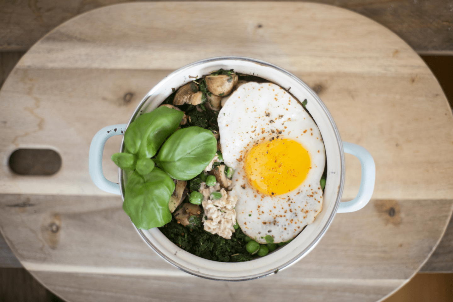 Diese herzhafte Variante der Porridge Bowl mit Spinat, Erbsen, Champignons, Kräutern und Ei solltest Du unbedingt ausprobieren – auch wenn herzhafter Porridge Dich auf den ersten Blick noch nicht so überzeugt. Diese Bowl schmeckt richtig gut, sättigt und stellt Dich zufrieden.