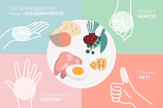 Ein weiterer Trick: Nutze einen Messbecher, um die optimale Portionsgröße zu finden. Bei Proteinen bietet sich eine Waage an, die 1.5 bis 2 kg misst. Wenn du keine zu Hause hast, nutze einfach deine Faust als Maßeinheit. Nutze diesen praktischen Guide um die ideale Portionsgröße zu bestimmen.