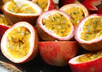 Eine Maracujafrucht enthält auf 100 Gramm des köstlichen Fruchtfleischs nur 80 Kilokalorien, dafür aber 2,4 Gramm Eiweiß und lediglich 0,4 Gramm Fett. Mit einem satten Kohlenhydratanteil von etwa 13 Gramm und 1,4 Gramm Ballaststoffen ist sie ein idealer Snack für Zwischendurch. Obwohl die Maracuja einen hohen Kohlehydratgehalt hat, können relativ bedenkenlos mehrere Früchte nacheinander verspeist werden, denn sie hat pro Frucht nur einen kleinen Anteil an essbarem Fruchfleisch. Ohne gleich zu hohen Blutzuckerwerten zu führen, gibt die Maracuja einen angenehmen Energiekick für Zwischendurch, der gleichzeitig viele wichtigen Nährstoffe liefert.