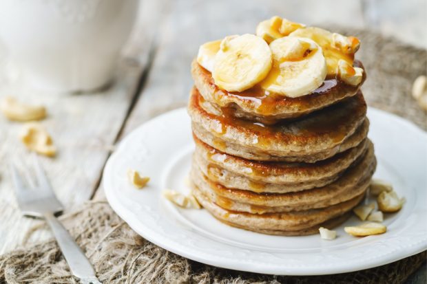 Banane, Ei, Zimt. Mehr brauchst du für diese saftig-süßen Banana Pancakes nicht. Vermatsche die drei Zutaten, gib etwas Kokosöl in eine Pfanne und brate den “Teig” für etwa 1 Minute pro Seite – und fertig!