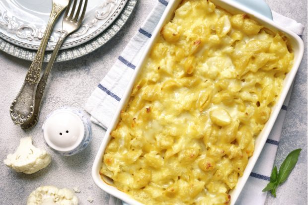 Ja, unser lieber Blumenkohl ist ein echter Tausendsassa. Er eignet sich nicht nur hervorragend als Pizzaboden, sondern auch als Nudelersatz. Koche den Blumenkohl einfach bis kurz vor Garpunkt, schneide ihn anschließend klein und zaubere eine Käsesoße dazu. Gib beides zusammen in eine Auflaufform und backe das Ganze für ein paar Minuten im Ofen. Toppe den Käseauflauf mit Basilikum oder Koriander und genieße deine kohlenhydratfreie Mac’n’Cheese-Alternative.